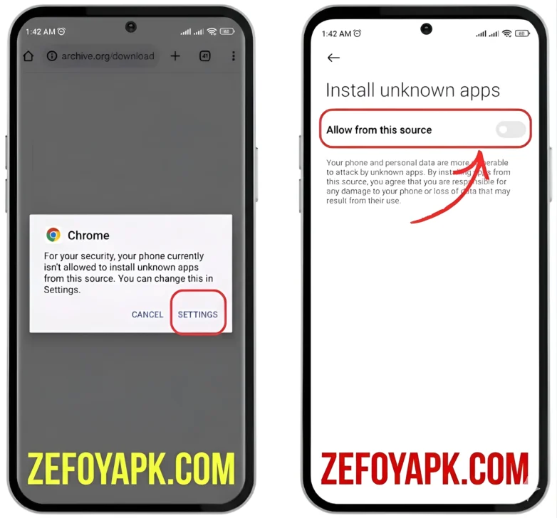- Enable the “Unknown Sources” option. This is necessary because Zefoy is a third-party APK and is not directly installed from the Google Play Store.