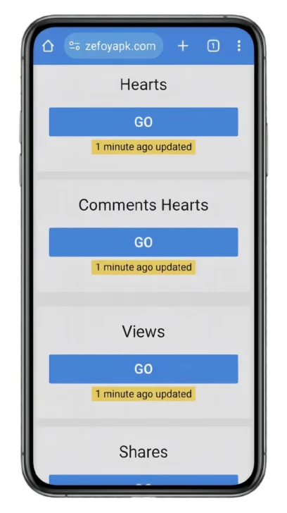 Zefoy APK is a third-party Android application designed to increase social media engagement such as likes, views, followers, and comments, mainly for TikTok.